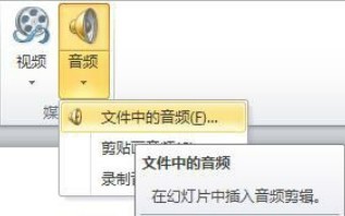 步骤1:单击“插入”选项卡“媒体”组中的“音频”按钮
