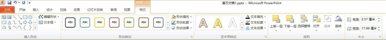 步骤2:利用“绘图工具格式”选项卡中的相关命令,可完成对艺术字的编辑修改,如图10.36所示。