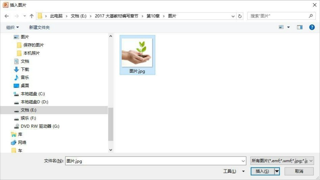 ,打开“插入图片”对话框,从中选择图片所处的位置,如图10.7所示。