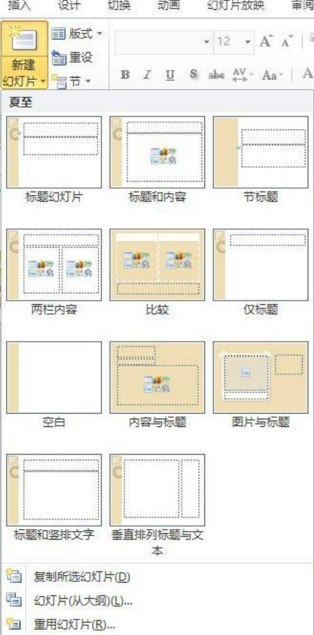 步骤1:单击“开始”选项卡“幻灯片”组的“新建幻灯片”按钮