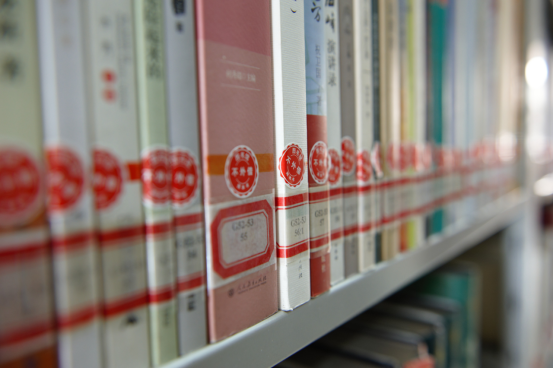 图书根据索书号从小到大、由左向右的在书架上有序排列!