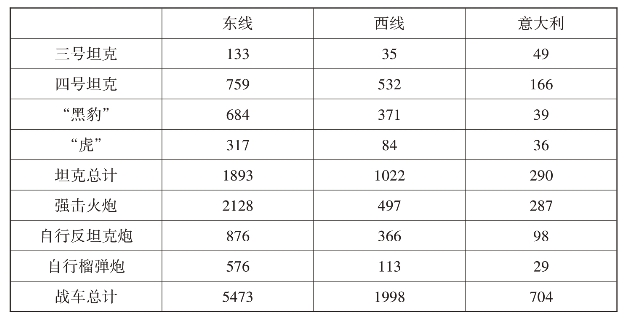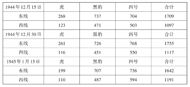 1944年底1945年初 德军在东西两线的主力型号坦克数量对比[18](单位:辆)