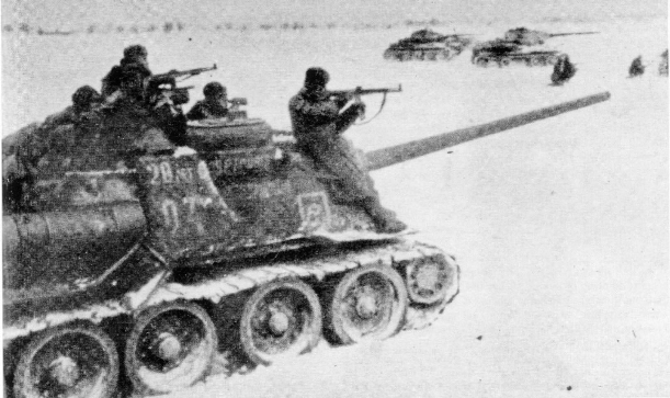 经过补充的苏联坦克集团军有些近乎齐装满员。以第3 近卫坦克集团军为例,在1945 年1 月1 日拥有701 辆坦克,60 辆Su-57、63 辆Su-76、63 辆Su-85、63 辆Su-122。还有220 门76 毫米火炮、20 门100 毫米火炮、222 门82 迫击炮、138 门120 迫击炮、48 辆M13 火箭炮、98 门57 毫米炮、80 门37 高炮[30]。这几乎完全符合苏联1945 年的新编制。此前苏联坦克集团军的编制变化包括:1944年9月新增的轻型炮兵旅(48门76毫米火炮,20门100毫米火炮),以及轻型自行火炮旅(编制有65辆)。