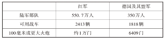 武器方面,苏联对德作战军1944 年初拥有如下装备:[59]火炮迫击炮95604门(不含50轻迫和火箭炮),坦克自行火炮5254辆,作战飞机10200架。