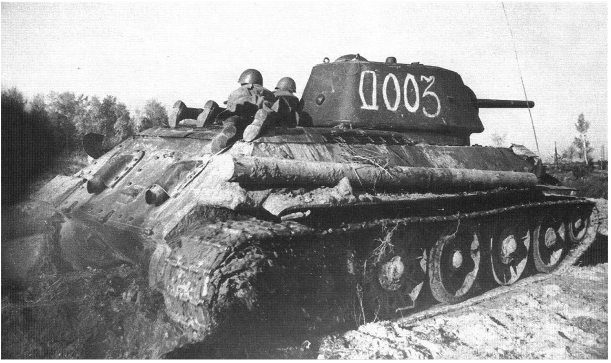 战斗中的1943型T-34坦克。1944年,这种旧式坦克还有很多
