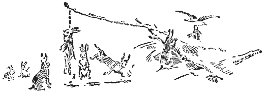 第二天一早,训练开始了。它们的眼前出现了几个类似舱口的小门,穿过这些小门,它们来到了一片更大的场地上——“赛狗场”。突然,一群男孩出现了,他们吵吵嚷嚷地追起了这些兔子,试图把它们撵回原来那片较小的区域——安全区。几天之后,兔子们就掌握了要领,一旦情况不妙,它们只要再次穿过那些舱门回到“安全区”,就万事大吉了。