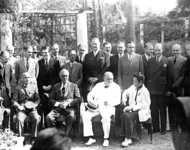 1943年11月28日—12月1日,进行了永载史册的德黑兰会议。丘吉尔自我陶醉地宣称,这是“人类有史以来最大一次世界力量的聚会”,虽然他的力量最小。会议中“三巨头”的钩心斗角,和他们施展出来的个人魅力,足够撰写另外一部专著。围绕其间的所谓“德国间谍风波”,还产生了由阿兰·德龙出演的著名电影。