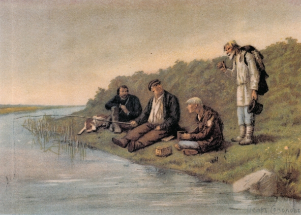 八月初旬,天气还炎热得厉害。每天从十一点钟到三点钟的时候,就是极有坚决力的人也不能出去行猎,最忠顺的狗都“刷起猎人的靴跟”来,那就是懒洋洋地一步步跟在后边,拖着条大舌头。主人有时叱责它,也只是微摇着尾巴,脸上表示不安的颜色,却不肯走在前边。可是我就在这样的日子出去行猎。我心里本想着在阴凉里休息一会儿,自己却勉强挣扎着。我那只勤劳的狗还在树林中奔跑着,虽然自己也不希望在这狂热的行动里得到什么好结果。呼吸窄闭的暑气也叫我不得不打算保守自己的精力。后来我勉强走到伊斯塔河那里,这河已为我亲爱的读者所熟悉的了。从小山岩上下来,沿着沙滩,奔向泉水——这股泉水名叫“草莓泉”,四乡的人差不多都知道的。这股泉水从岸旁山上的罅隙里流出来,渐渐流到深涧里去,离开二十步左右就从那里折向河里去,发出快乐的絮语似的声音。橡树根生在涧石上面,泉旁络草丛生,日光几乎永不去侵犯那银色的潮湿气。我走到泉水那里;草上放着一个水瓢,是过道的乡人留下作公共用的。我喝了口泉水,躺在阴凉里,向四周眺望了一会儿。在泉水入河所成的湾那里——因此湾旁永生着涟漪,背着我坐着两个老人。一个身体很粗壮,身材高大,穿着件墨绿的齐整的大衣,在那里钓鱼;一个是瘦小的人,穿着件带补丁的衣裳,还不戴帽子,膝上放着一只装小虫的罐子,有时把一只手按在秃白的头上,仿佛要用来抵抗太阳。我很认真地看他,才知道他是舒米希诺村的斯梯奥浦式卡。现在让我先把这个人介绍给读者。