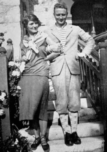 菲茨杰拉德和他妻子泽尔达在自家别墅的台阶上