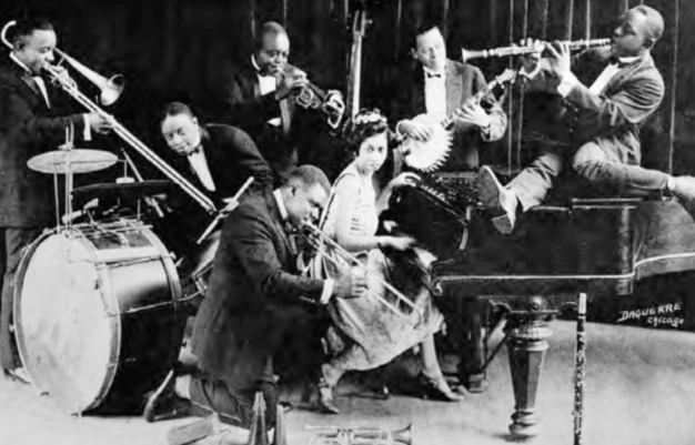 从左到右的乐队演奏分别是:长号(奥诺雷·杜特伊)、鼓(贝比·多兹)、短号(金·奥利弗)、钢琴(莉尔·哈定)、班卓琴(比尔·约翰逊)、单簧管(约翰尼·多兹)。最前面的是小号(路易·阿姆斯特朗)。