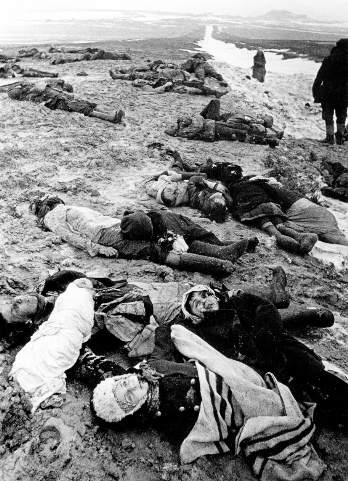 与此同时,苏军第51 集团军则在12 月30 日收复了刻赤。在这座被占领不过一个半月的城市里,苏联人目睹了自战争开始以来最严重的暴行之一:不少于7000名居民,包括大量儿童,被德军屠杀后丢弃在城郊巴格罗沃镇附近的一条反坦克壕沟内。据说在此前,还发生了大量对妇女的暴行。