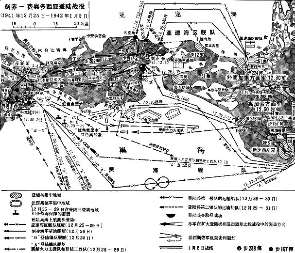 在苏联方面,收复刻赤后的第51 集团军继续向西推进,并在1 月2 日下午与第44 集团军会合。至此,他们已经收复了刻赤半岛。但在此后一段时间里,苏军除了组织过几次小规模战术登陆外,没有太大的行动。其中1 月5 日在埃乌帕托里亚的行动最为成功。德国人承认,当地的守备部队在1月8日遭到了苏军全歼。