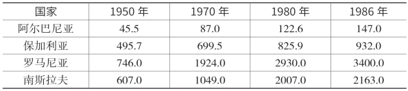 同时,下面的统计又向我们提供了20世纪80年代初巴尔干各国的总人口和各个政党的人数的大致情况(单位:万人)