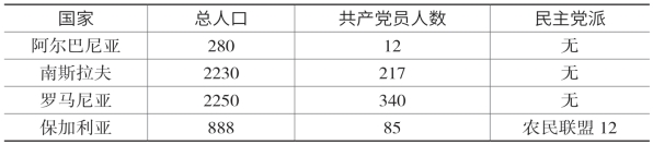 战后巴尔干国家共产党的发展情况如下表[2](单位:千人)。