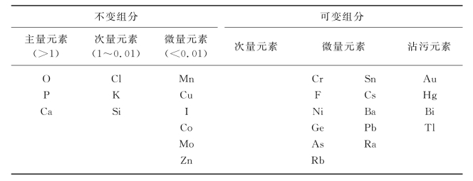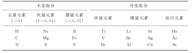 表3-3还指出了生物体内的元素组成中还有着相对的不变和可变组分。