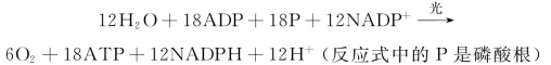 在光反应阶段,细胞中的叶绿体利用光能把水分解为氢和氧。每两个氧原子互相结合而成氧分子,释放到空气中。分解出的氢有一半与细胞中的辅酶Ⅱ(NADP)结合,形成还原型的辅酶Ⅱ(NADPH),同时又使得细胞中低能量的二磷酸腺苷(ADP)变成了高能量的三磷酸腺苷(ATP)(ADP和ATP可参见第五章)。这样,就将光能转变成ATP的化学能了。光反应过程可用下面的化学方程式来表示: