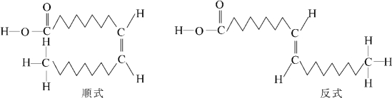 不饱和脂肪酸虽然对人体有好处,但它也不全是这样。我们已知道,根据碳链上氢原子的位置,不饱和脂肪酸可以分成两种:如果氢原子都位于同一侧,叫作“顺式脂肪酸”,链的形状曲折;如果氢原子位于两侧,叫作“反式脂肪酸”,是直链,如图4-32所示。