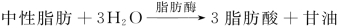 中性脂肪在脂肪酶作用下,又能被分解回脂肪酸和甘油:
