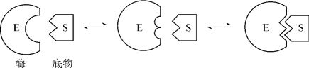 在20世纪50年代Koshland又提出了诱导契合学说。该学说认为酶与底物结合时,酶有相当大的自由度,因而可以改变它的构象,使自身部分地包围底物,从而使催化基团能够处于相对被作用键(或基团)最适合的位置。这一学说已为α-射线衍射法测定结果证实了:当底物或抑制剂与酶结合后,酶的构象确实发生了一定的变化。酶的诱导契合如图5-17所示。