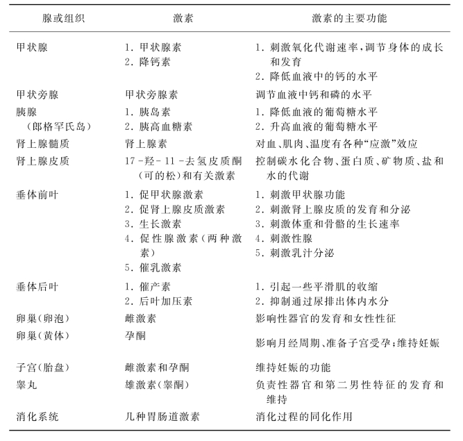 下面就介绍其中一些主要的激素。