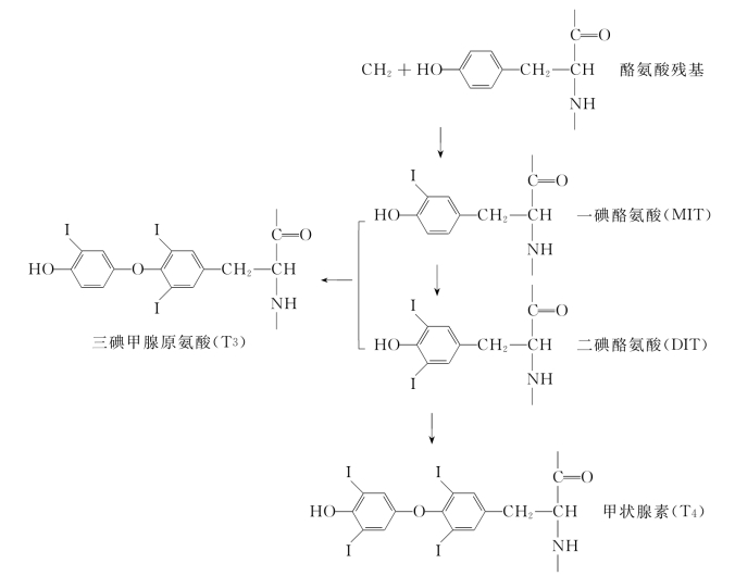 图5-30 甲状腺素的合成