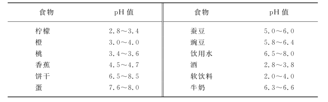 表6-1 一些食品的酸碱性
