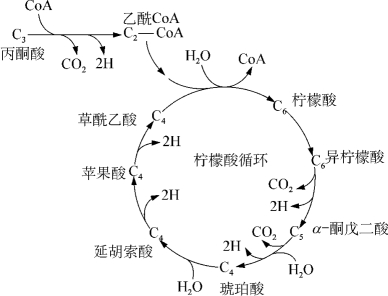 反应产生了2NADH2。反应中的CoA(辅酶A)是一种辅酶,主要参与脂肪酸以及丙酮酸的代谢。乙酰辅酶A是辅酶A的乙酰化形式,可以看作是活化了的乙酸,由乙酰基CH3CO—与辅酶A的半胱氨酸残基的SH—基团相连。
