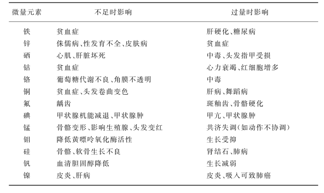 7-4-1 微量元素缺乏与过量时对生命的影响