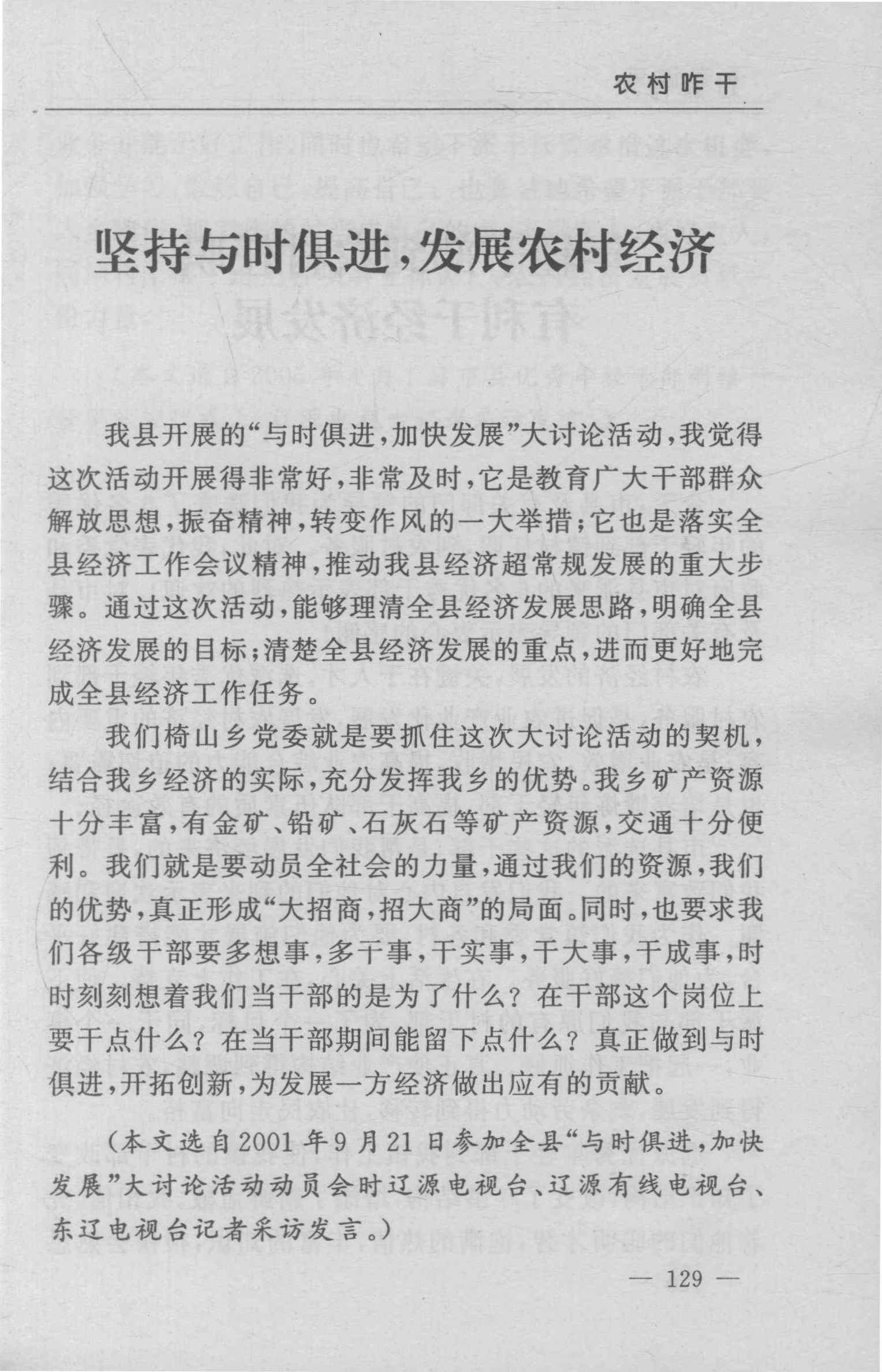 坚持与时俱进,发展农村经济