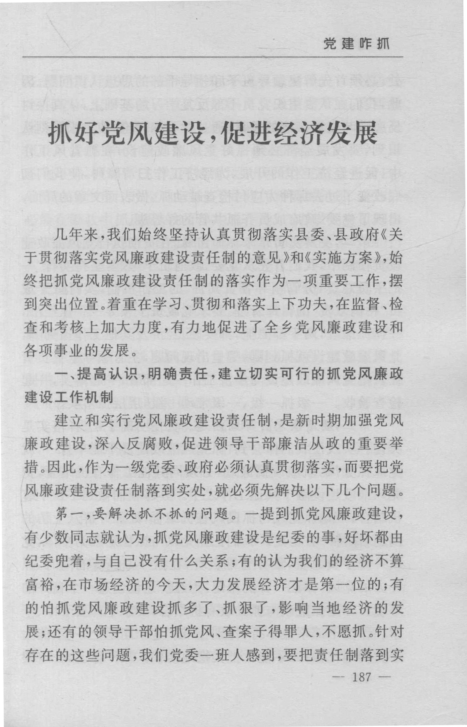 抓好党风建设,促进经济发展