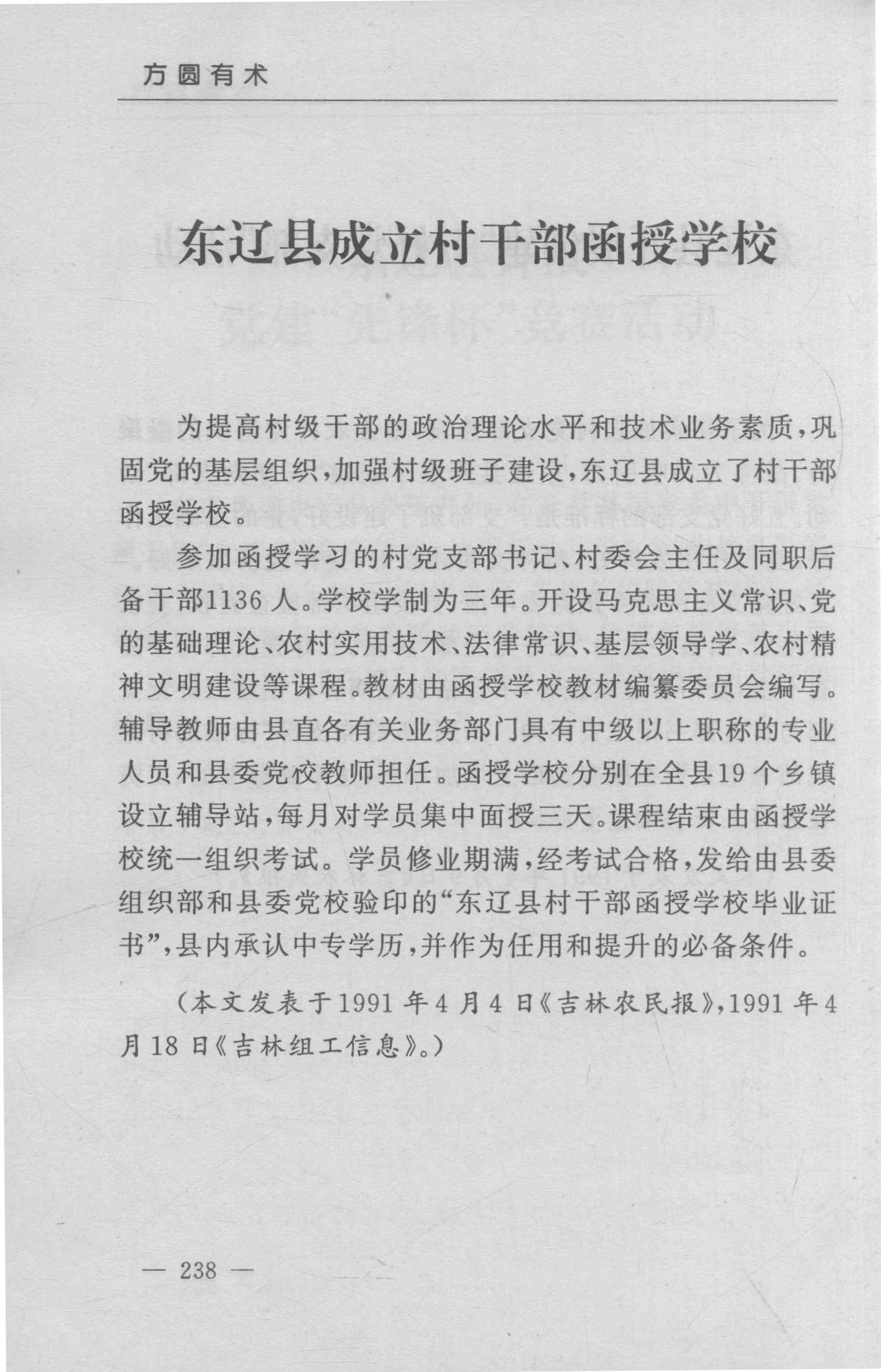 东辽县成立村干部函授学校