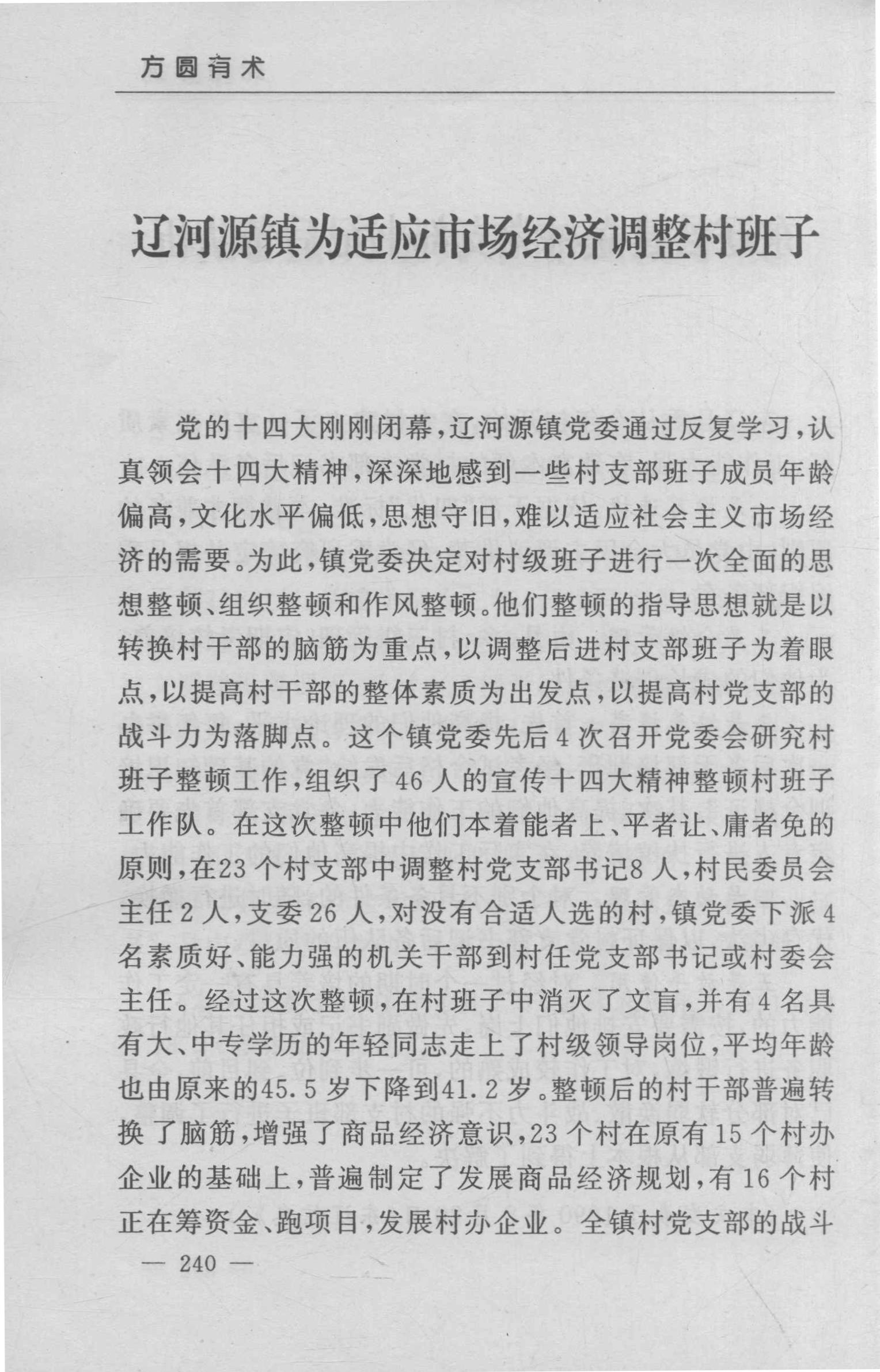 辽河源镇为适应市场经济调整村班子