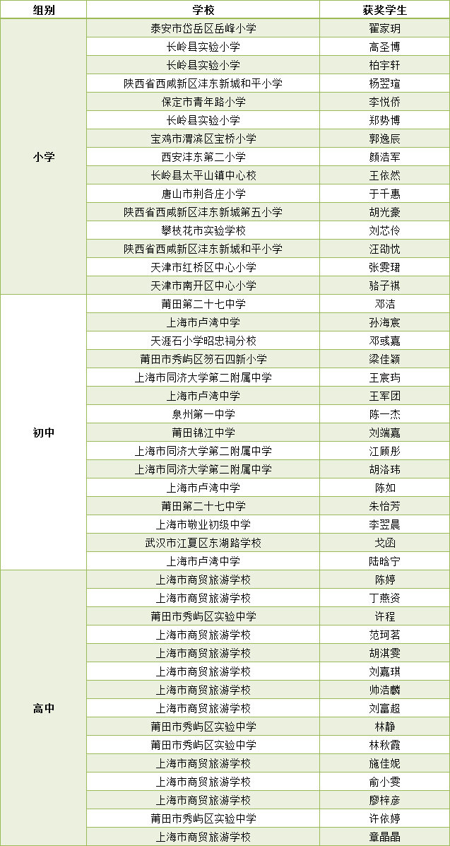 获奖名单
