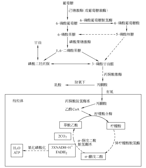 图5-2 葡萄糖氧化分解3条代谢途径的相互关系