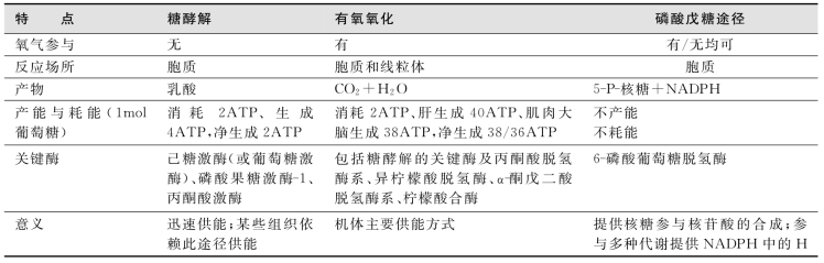 表5-1 葡萄糖氧化分解3条代谢途径的比较