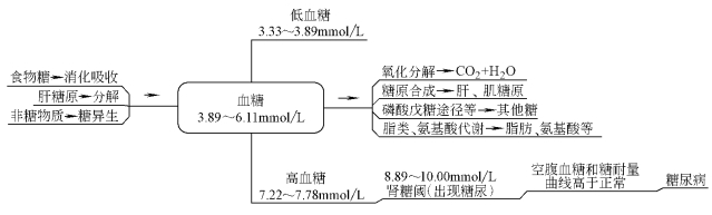 降血糖激素:胰岛素→促进血糖各来源、抑制血糖各去路,惟一同时促进糖、脂肪、蛋白质合成的激素。