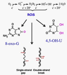 1. mtDNA易发生突变。ROS是导致mtDNA损伤、突变的主要原因。线粒体是氧化磷酸化的场所,细胞正常呼吸时,大约有1%~5%的氧会逃逸出呼吸链而形成ROS,当细胞受损伤时,会产生更多的ROS。与核基因组DNA相比,mtDNA缺乏组蛋白、DNA结合蛋白的保护,相对“裸露”,因此,mtDNA极易受到ROS的氧化损伤。损伤的结果有多种形式:链断裂、碱基丢失、碱基被氧化修饰等。如脱氧鸟嘌呤核苷(deoxyguanosine,dG)可被氧化成8-oxo-dG,在mtDNA复制过程中8-oxo-dG易与A配对,第二次复制后,原来的GC配对转为AT配对,且错配后稳定存在,成为一些遗传性疾病的基础。