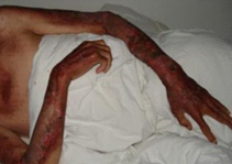 查体发现:患者双臂、双手、双下肢及双脚的皮肤明显发黑,而且皮肤发糙,有白色皮屑脱落。