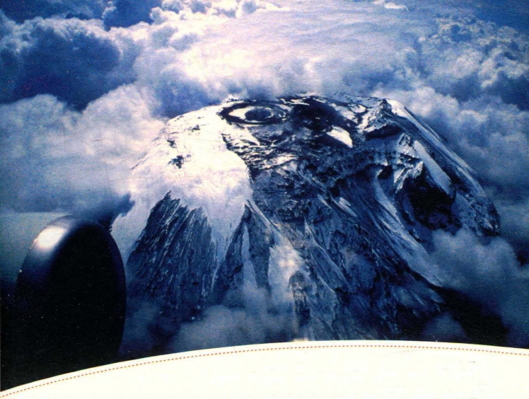 ▲从空中俯瞰,乞力马扎罗山的雪峰成了飘浮在云海中的孤岛。主峰沉积了几千年的积雪,使乞力马扎罗山成为世界各国探险家的天堂。