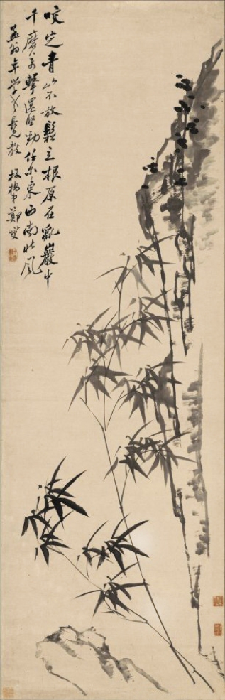 康熙后期至雍正、乾隆两朝是清代政治昌明、经济繁盛的时期,随着政权的巩固、疆域的统一、社会的安定、经济的繁荣,绘画领域也呈现出活跃的气象,画家辈出,形成北京和扬州南北两个绘画中心。以北京为中心的宫廷绘画随着若干西方画家供职于宫廷而出现了中西融合的画法,其中最有名气的画家是意大利画家郎世宁。他的绘画有意识地削弱了西画的明暗对比、高光阴影和焦点透视等技法,掺入中国传统的审美观念,以细致的渲染避免笔触的暴露,用皴擦取代阴影的涂染,代表作有《嵩献英芝图》等。与此同时,“扬州八怪”活跃在扬州地区,他们发展了重视生活感受、强烈抒发性灵的阔笔写意,尤其是写意花鸟画。因他们非统治者标榜的正宗,便被目之为怪。“扬州八怪”并不专指某八个人,实际上是泛指代表扬州画坛新风的一批画家。主要代表人物及作品有郑燮的《竹石图》(图1-18)、金农的《自画像》、黄慎的《渔妇图》等。