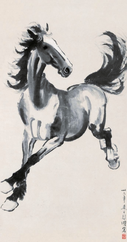 徐悲鸿是近现代著名画家、美术教育家,是中国近代现实主义艺术大师。他以毕生精力从事美术教育工作,培养扶植了大量美术人才。代表作有《奔马》(图1-22)、《逆风》、《愚公移山》等。