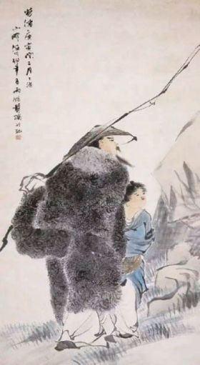 笔墨要有相对的独立性。写意人物画的笔墨,除表现人物的形、神、意、境之外,还要有笔情墨趣,清代恽寿平言:“有笔有墨谓之画,有韵有趣谓之笔墨,潇洒风流谓之韵,尽变穷奇谓之趣。”正是因为笔墨的前致,构成了写意人物画特有的形式美感。但笔情墨趣在写意人物画中的表现要有所区别地对待,一般来说,人物众多,场面复杂,对笔情墨趣的把握要着眼于整体构成,把握大关系、大的对比效果,以免画面因笔墨趣味的变化太多而琐碎花乱。人物单一,画面相对简单则要利用笔情墨趣的变化变简单为丰富。