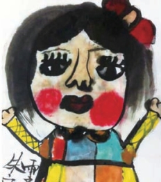写意人物画的用色特点是简洁、明快、含蓄,对墨色起补充、辅助作用,并且要与墨色完美地协调起来,重点是脸部、手。在给脸部着色前可将脸部用清水打湿,然后用羊毫虚笔着色(图4-32—图4-34)。