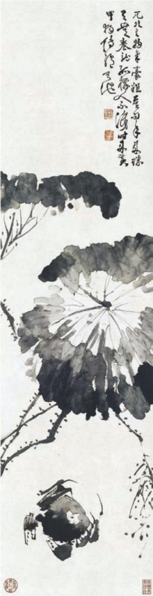 图6-20 朱耷 《荷花水鸟图》