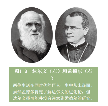 两位生活在同时代的巨人一生中从未谋面。虽然孟德尔肯定了解达尔文的进化论,但达尔文很可能并没有注意到孟德尔的研究。