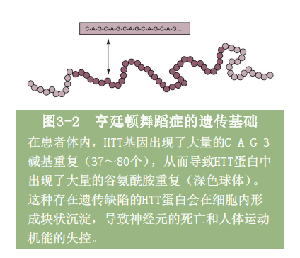 实际上,这样的单基因遗传病还真不少。例如,大家可能听说过鼎鼎大名的亨廷顿舞蹈症,这种疾病就是由于人体基因获得新“功能”导致的。亨廷顿舞蹈症可能是人类最早认识的遗传疾病之一,早在中世纪的欧洲就能找到相关症状的书面记载(特别是肢体不受控制地摇摆)。1872年,美国医生乔治・亨廷顿(George Huntington)在研究中发现,亨廷顿舞蹈症存在明显的遗传性。如果父母一方或双方患有该病,其子孙后代也会有相当大的患病可能。在此之后,人们进一步明确了亨廷顿舞蹈症和人类四号染色体短臂上一个名为HTT的基因有着直接联系。