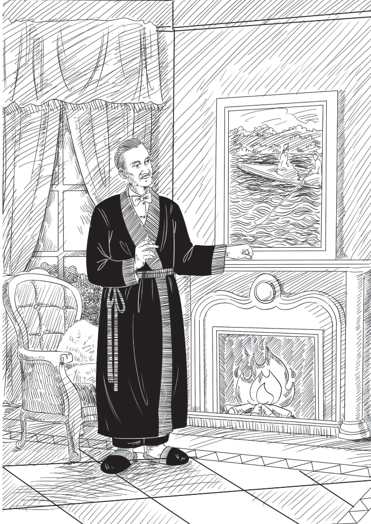 多年来,布太太和埃利奥特的投资都交给亨利·马图林管,姐弟对他的眼光很信任,而且他们这样做有十分充足的理由。亨利向来都不做投机生意,把他们的钱都放在可靠的股票上,但是,由于股票的价值大大增长,他们发现自己有限的那点财产却增加得很可观,使他们惊喜万分。埃利奥特告诉我,他不用动一根指头,一九二六年时的资产到一九二八年时已经翻倍了。他现在六十五岁,头发花白,满脸皱纹,眼泡肿胀,但是仍不服老;腰杆挺拔,保持了很好的身材;在烟酒上向来有节制,而且很注意仪表。只要他能够有伦敦最好的裁缝给他做衣服,有自己的特约理发师为他理发刮脸,有按摩师天天早上来服务,使他的优美身形保持常态,他决不听任自己的身体受到时光的摧残。他早已忘记自己曾经沦为商贾之流,经常向人暗示自己早年曾经供职于外交界,但是从不明言,他不傻,决不会讲一句难免会被人戳穿的谎言。我得承认,如果我有机会塑造一位大使形象的话,埃利奥特就是最好的模板了。