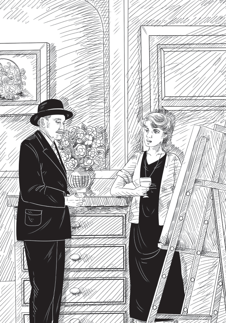 “别说了。[22]”她用法语回答。这句法语很难翻译。“不过,还不只这些。亚希尔先生又用我的名义在圣拉斐尔海边买了一所别墅,所以我将不仅以一个艺术家,还要以一个有产业的妇女的身份在里尔的社交界露面。再过两三年他就要退休了,那时,我们将像上流人士那样(像个高雅人士[23])住到里维埃拉。他可以在海上划船,捞虾子,我则画我的画。现在我让你看看我的画吧。”