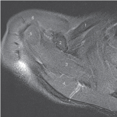 5 小圆肌 teres minor 6 喙肱肌 coracobrachialis