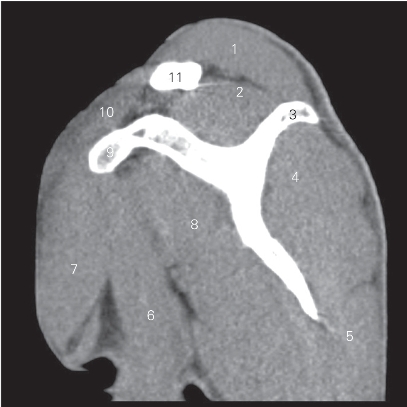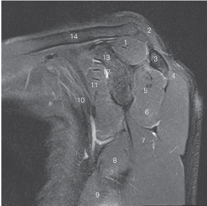 10 大结节 greater tubercle 11 三角肌 deltoid